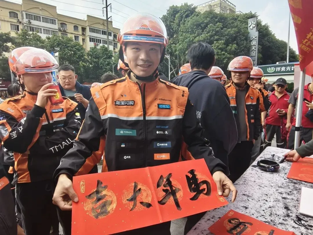 针对冬季户外骑行安全隐患,市公安局西乡塘区交警一大队警官开展专题宣讲,结合典型案例深入浅出讲解风险识别与规避技巧,并通过互动问答、发放安全手册等形式,强化从业者“文明出行,安全至上”的理念,获得现场小哥一致认可。同时,活动设置便民服务与互动展示区,市五医院志愿者提供量血压、健康咨询等服务,免费理发、按摩服务区等暖心服务有效缓解了从业者的身体疲惫;擅长书法的志愿者挥毫泼墨,为大家书写赠送春联、福字传递新春祝福,桂林银行设计反诈防骗套圈互动,让参与者在趣味中增强反诈意识,“益路书香”赠书环节也切实满足了大家的精神需求。