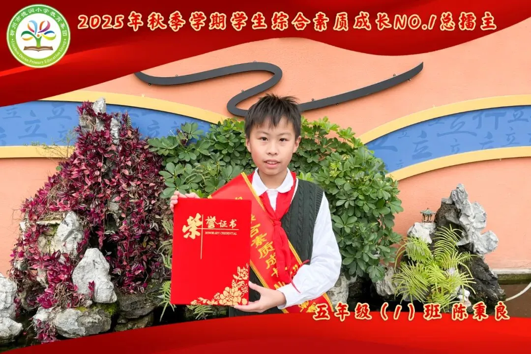 历经一学期的层层比拼与精彩角逐,一(4)班黄筠涵、四(1)班吴贞臻、五(1)班陈秉良、五(1)班玉依灵和五(4)班吴芷瑜五位同学凭借持续突破的成长表现、全面发展的综合素养,从月度擂主中脱颖而出,成功晋级为学期总擂主。他们以躬身实践诠释新时代少年的责任与担当,用点滴成长书写五育并举背景下的少年成长答卷。此刻,让我们一同见证榜样的力量,汲取前行的奋进能量!