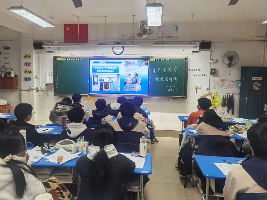 活动采用“主会场分享 + 班级直播联动” 的形式,让全体高一、高二年级学生都能同步参与这场成长盛宴。各班级学子在教室内认真聆听、细心记录,隔着屏幕感受校友的成长力量与分享诚意。