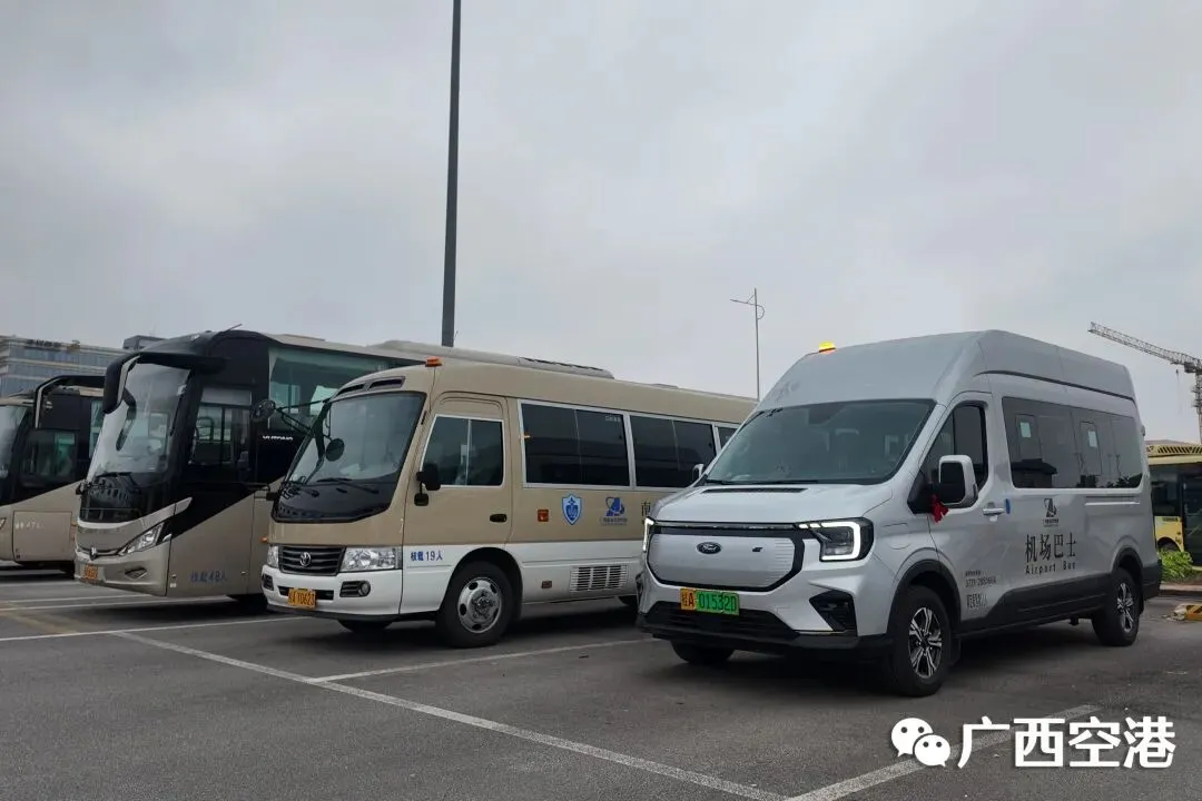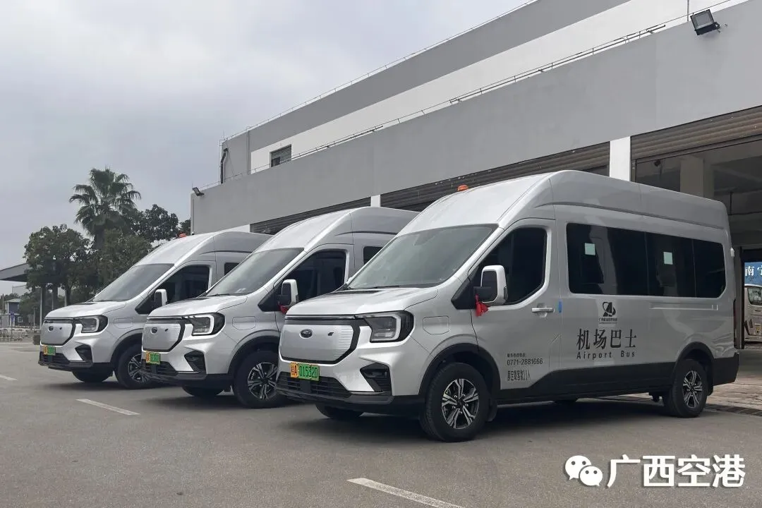 近日,南宁机场启用新能源中型客车运营。