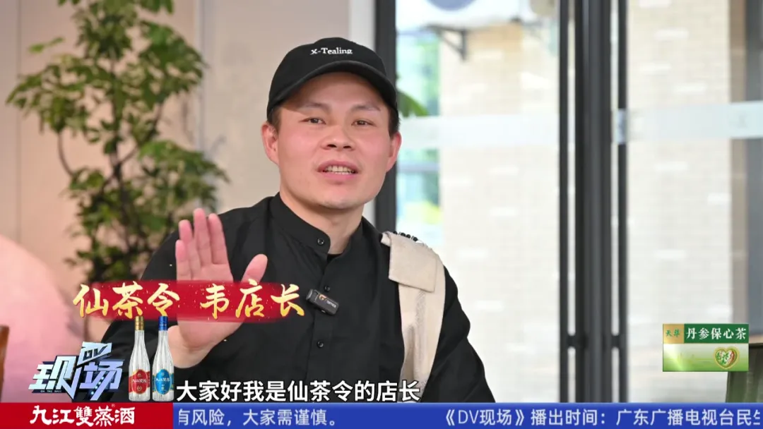 仙茶令 韦店长:“今天给大家推荐的是我们的招牌——陆家花田的茶,用横州茉莉做茶底,搭配广西本土水牛奶,口感丝滑轻盈,还能留住纯粹的茉莉花香。”