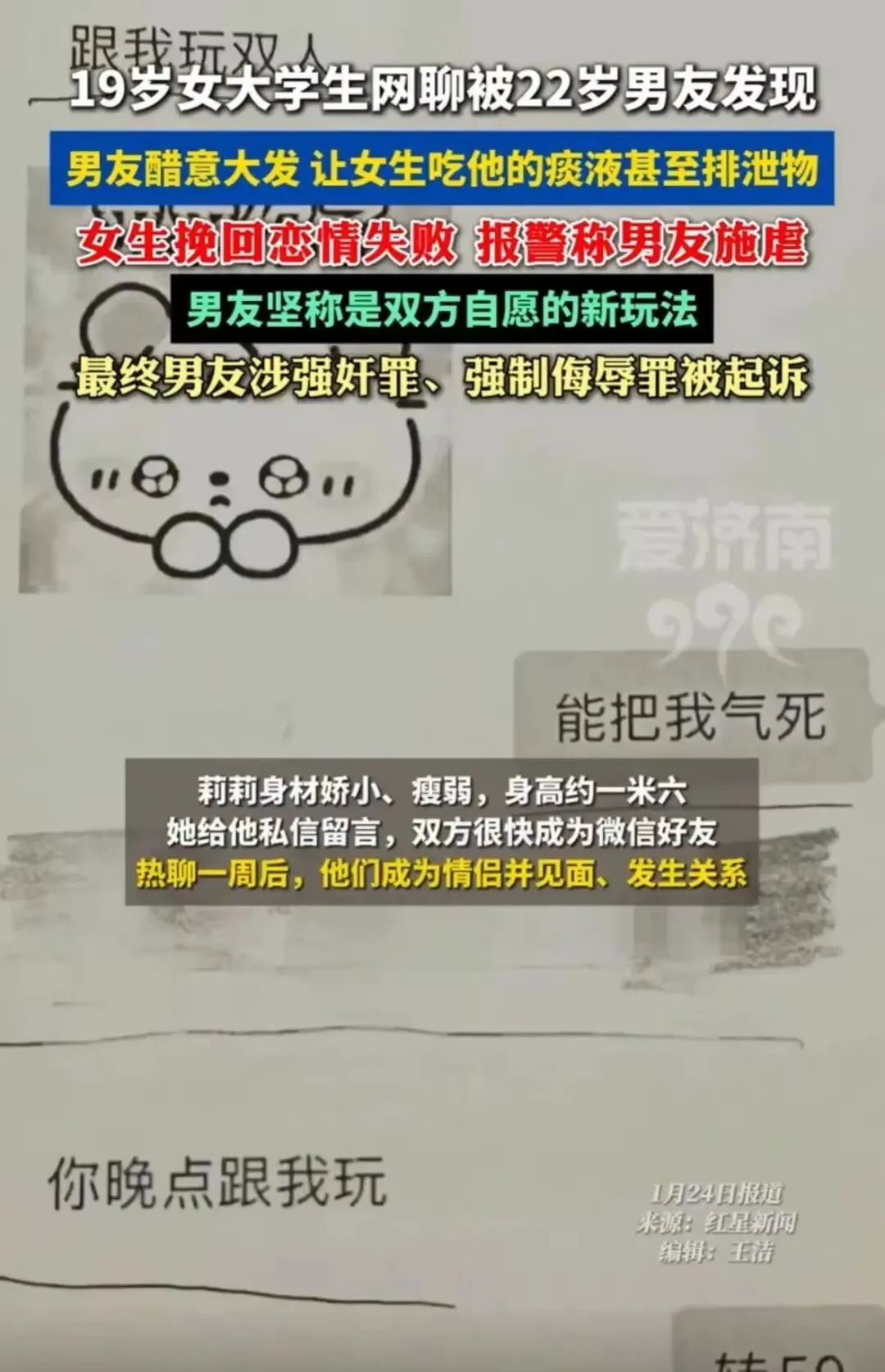 据悉,2024年8月,大一新生莉莉通过短视频平台结识了高大帅气的牛牛,两人迅速相恋。恋爱初期,二人相处融洽,莉莉感受到了平等与照顾,对牛牛产生了情感依赖。然而,这段看似美好的校园恋情,在2025年3月16日急转直下。