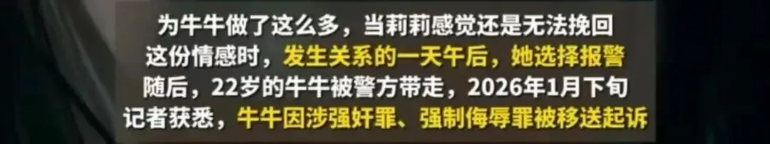25日下午,在又一次被迫吞食秽物后,莉莉意识到感情已无法挽回,离开出租屋不久便拨打了报警电话 。牛牛很快被警方带走,并于2025年4月被检察院批准逮捕 。
