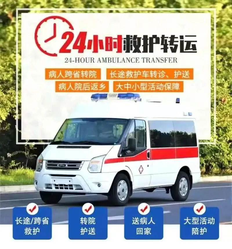 我们是救护车出租转运公司,120救护车接送病人预约护送。24小时为术后康复、危重患者及跨区域就医人群提供专业医疗转运服务,提供120救护车转运出租‖私人120救护车(非急救)‖跨省长途转运‖危重病人转运‖市内转运‖术后康复病人转运‖高铁病人转运‖患者返乡‖大型活动赛事保障‖配备ICU设备:呼吸机▪心电监护仪▪吸痰器•微量泵•氧气▪急救药箱▪专业医护团队