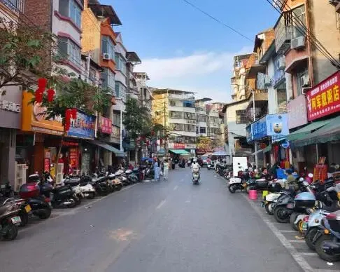 街道并不宽阔,但是非常干净,小吃摊也不多,卖的都是熟人熟路的东西,糍粑、烤鱼、凉粉。