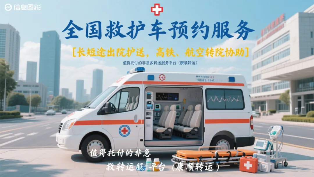 如需了解更多关于我们的服务,欢迎拨打158 0023 2407联系我们,或点击公众号内的在线咨询入口获取更多信息。康顺转运是一家提供救护车出租转运服务的调度平台。在全国范围内可为广大人们提供、安全的市内医院转诊、跨市转院、跨省转院、康复回家、护送回家等24小时响应的救护车出租调度服务。同时可承接大型运动会、大型活动展览会、各种田径,马拉松等活动的救护车保驾。