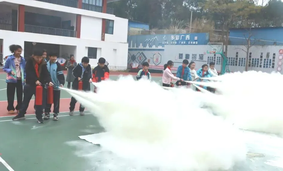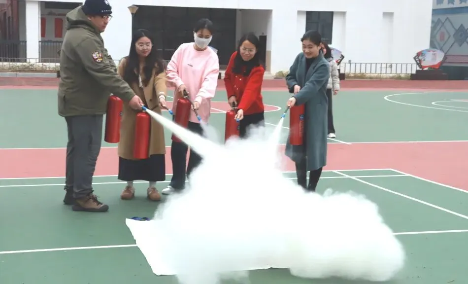 在灭火器实操体验环节,师生们近距离学习操作技巧,切实提升了火灾防范与应急处置能力。