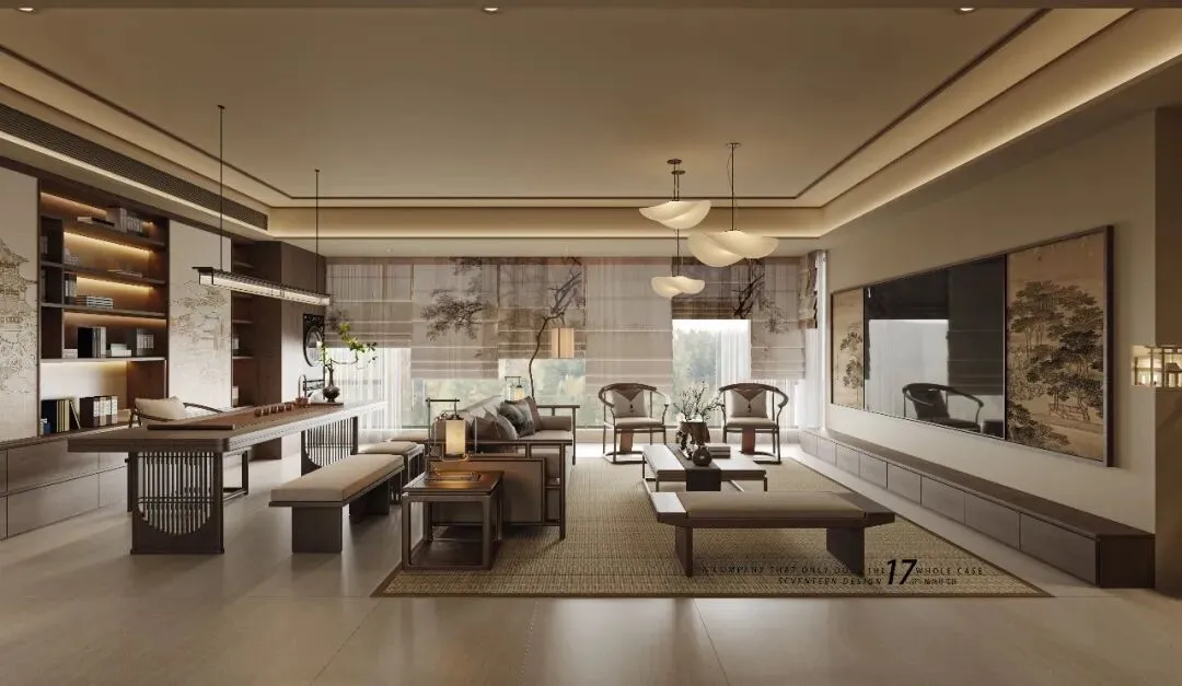 拾柒号设计公司以“提供专业室内整套解决方案,缔造高端品质生活“为使命,致力于高端住宅、别墅等私宅设计,提供包含定制化设计、品质施工及整体软装在内的一条龙服务。