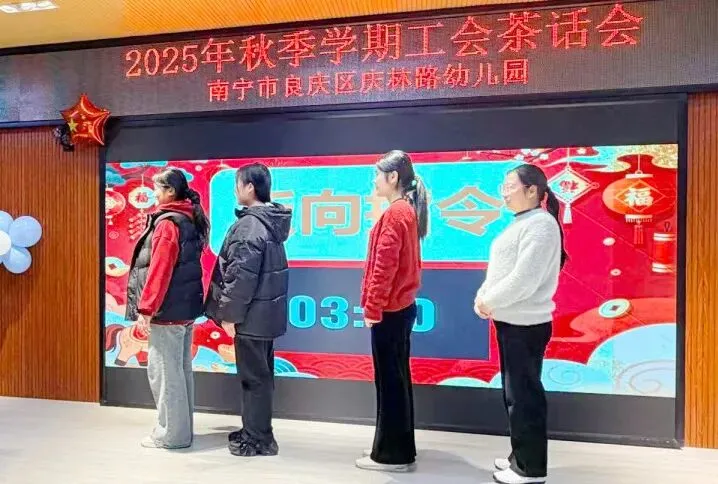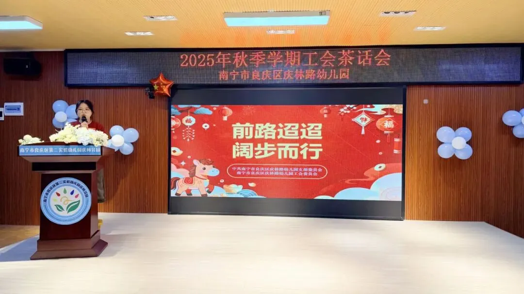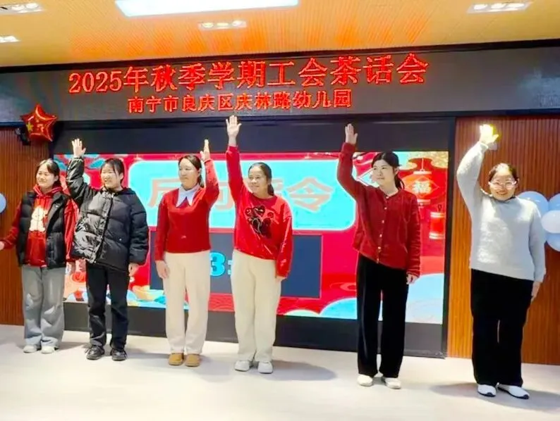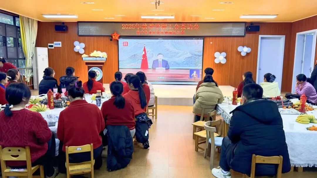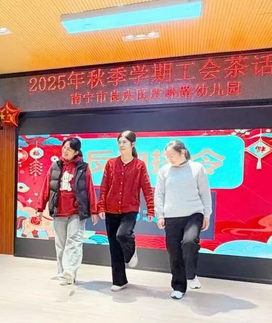 岁末暖冬聚,同心向未来。南宁市良庆区庆林路幼儿园二楼综合室内笑语盈盈、暖意融融,“前路迢迢,阔步而行”2025年秋季学期工会茶话会在此温馨开始。全体教职工欢聚一堂,在党政联动的浓厚氛围中,共叙情谊、共话成长,一同解锁这场充满欢乐与力量的年末之约。