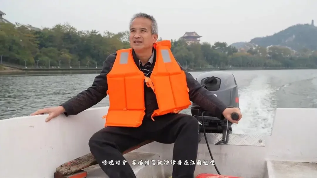 傍晚时分,苏培驾驶冲锋舟在江面巡逻,回望着这处被称为柳州古八景之一的“龙壁回澜”。江流千年,日新月异,柳江,正以崭新的面貌蜿蜒流淌。