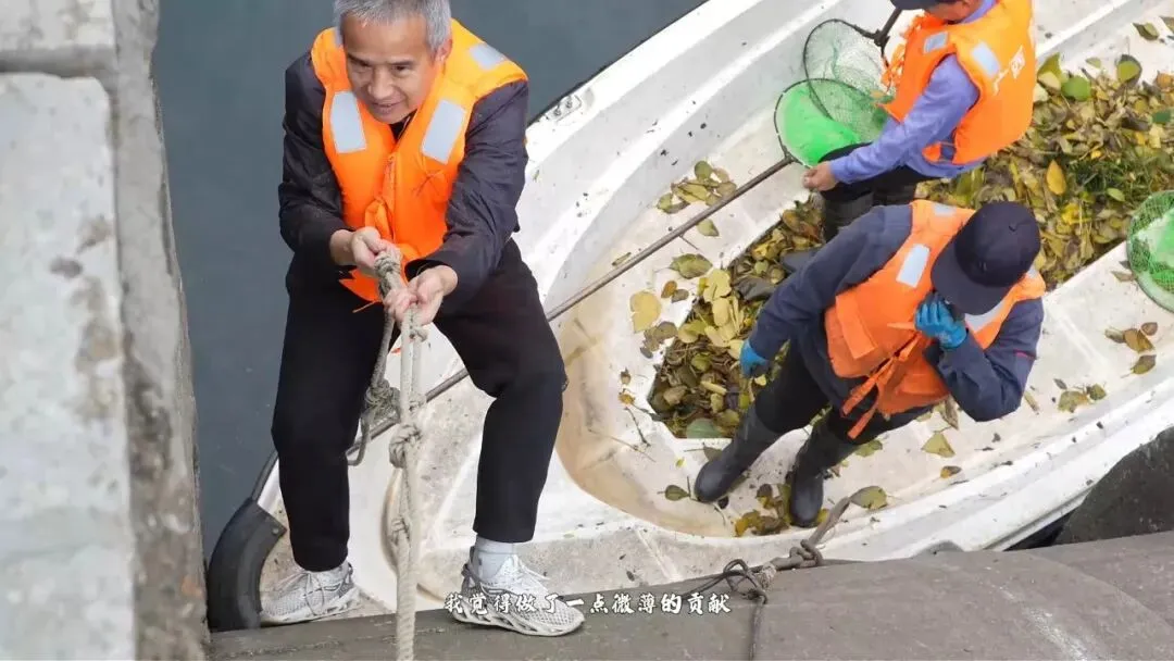 他叫苏培相,今年60岁,是柳江水上保洁队伍中的一员。
