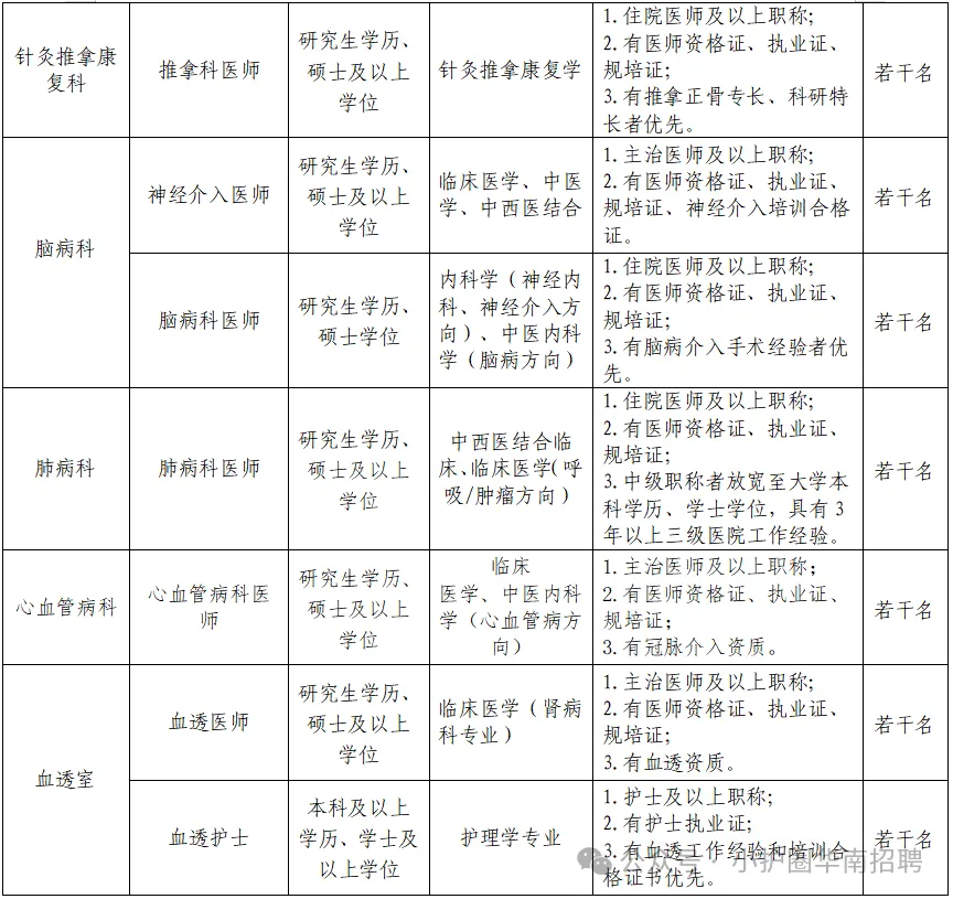 根据医院高质量发展需要,我院诚聘卫生医疗相关专业领域的人才,欢迎投简历应聘。
