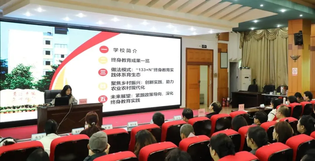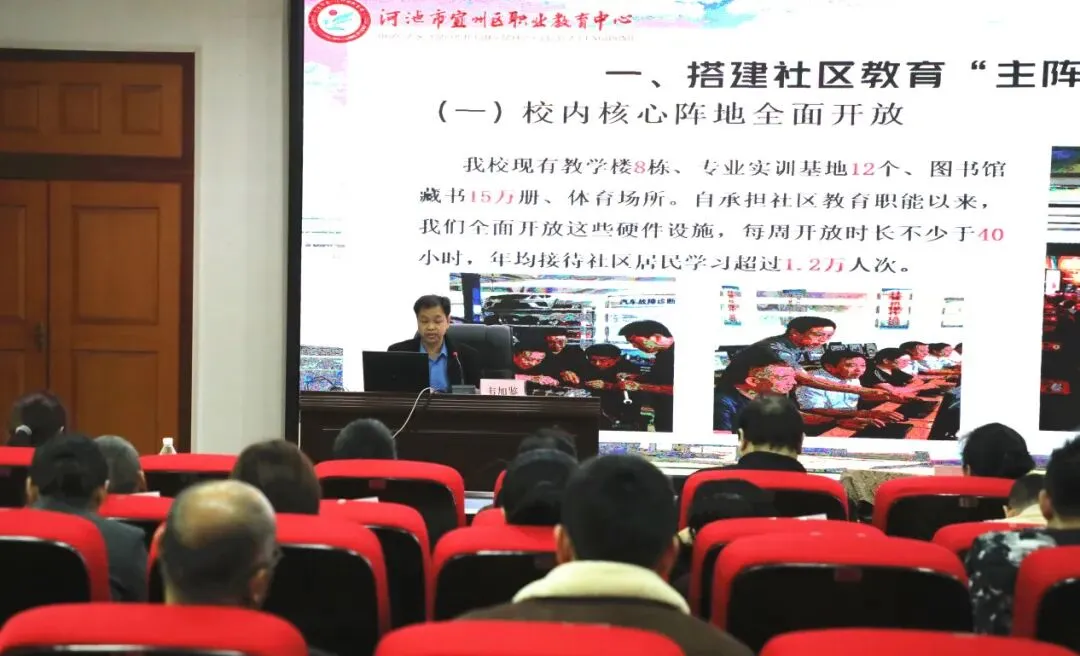 在职业院校经验交流环节,南宁市第一职业技术学校、柳州市第二职业技术学校、河池市宜州区职业教育中心依次开展了经验分享。我校以“政策引领·模式创新·品牌赋能”为主题,分享了学校在终身教育领域的“133”实践模式,也就是锚定一个核心目标、构建三大实践路径、打造三类特色品牌。学校围绕以需求为导向的课程体系、沉浸式学习生态以及资源整合平台,介绍了“邕有学堂·邻里学坊”“八桂米粉师傅 - 老友粉”培训等品牌项目,展现了职业学校服务社会的创新精神与担当意识。