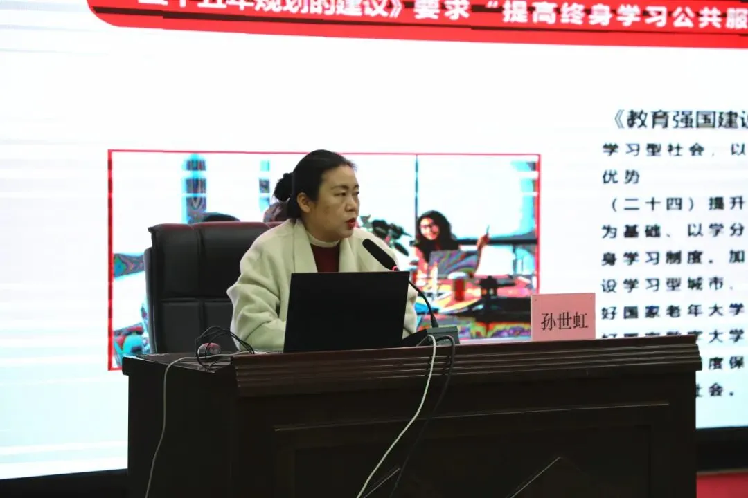 随后,广西开放大学社区教育学院院长孙世虹作了题为《职业院校服务全民终身学习的路径与策略》的专题报告。报告中,孙院长系统地阐述了职业院校在服务全民终身学习中所发挥的关键作用、角色定位以及实施策略,并指明了职业院校未来的发展方向。