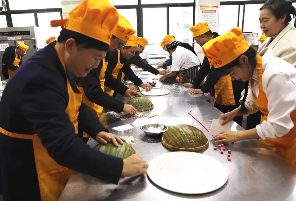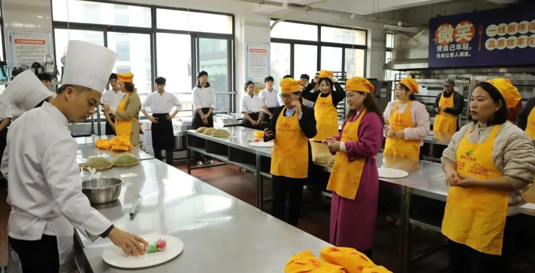 最后,研修班安排了体验环节。参会人员参观了学校的广西特色小吃博物馆,还在学校面点实训室亲身体验了南宁传统小吃粉虫的制作过程,直观感受了职业教育资源向终身学习服务转化的成效。