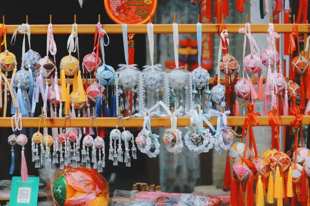 无论是古镇的商铺里,还是居民的家中,都能看到色彩斑斓、图案精美的绣球。