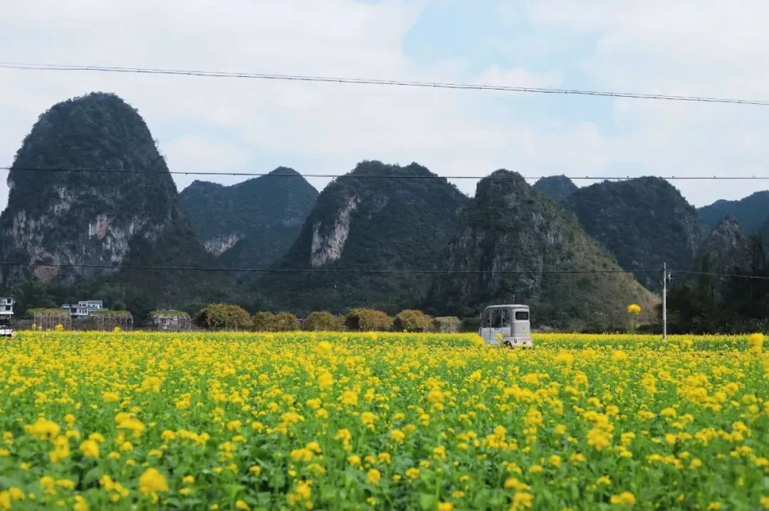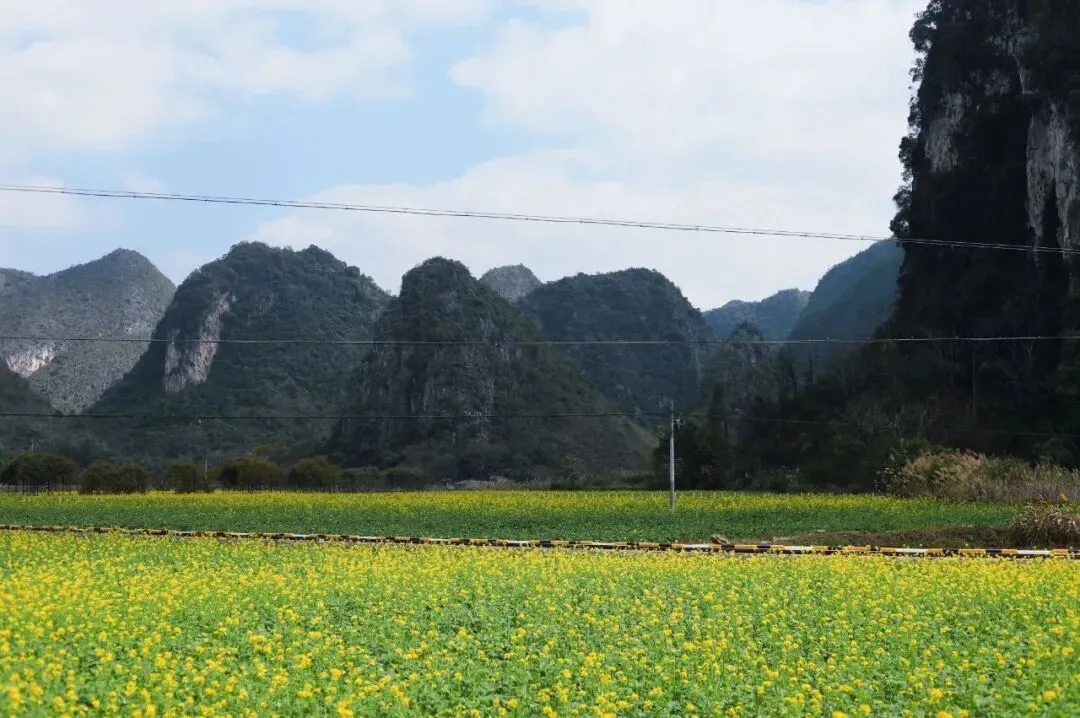 现在,旧州古镇的油菜花便迎来了花期,大片金黄的油菜花肆意绽放,宛如一片金色的海洋。