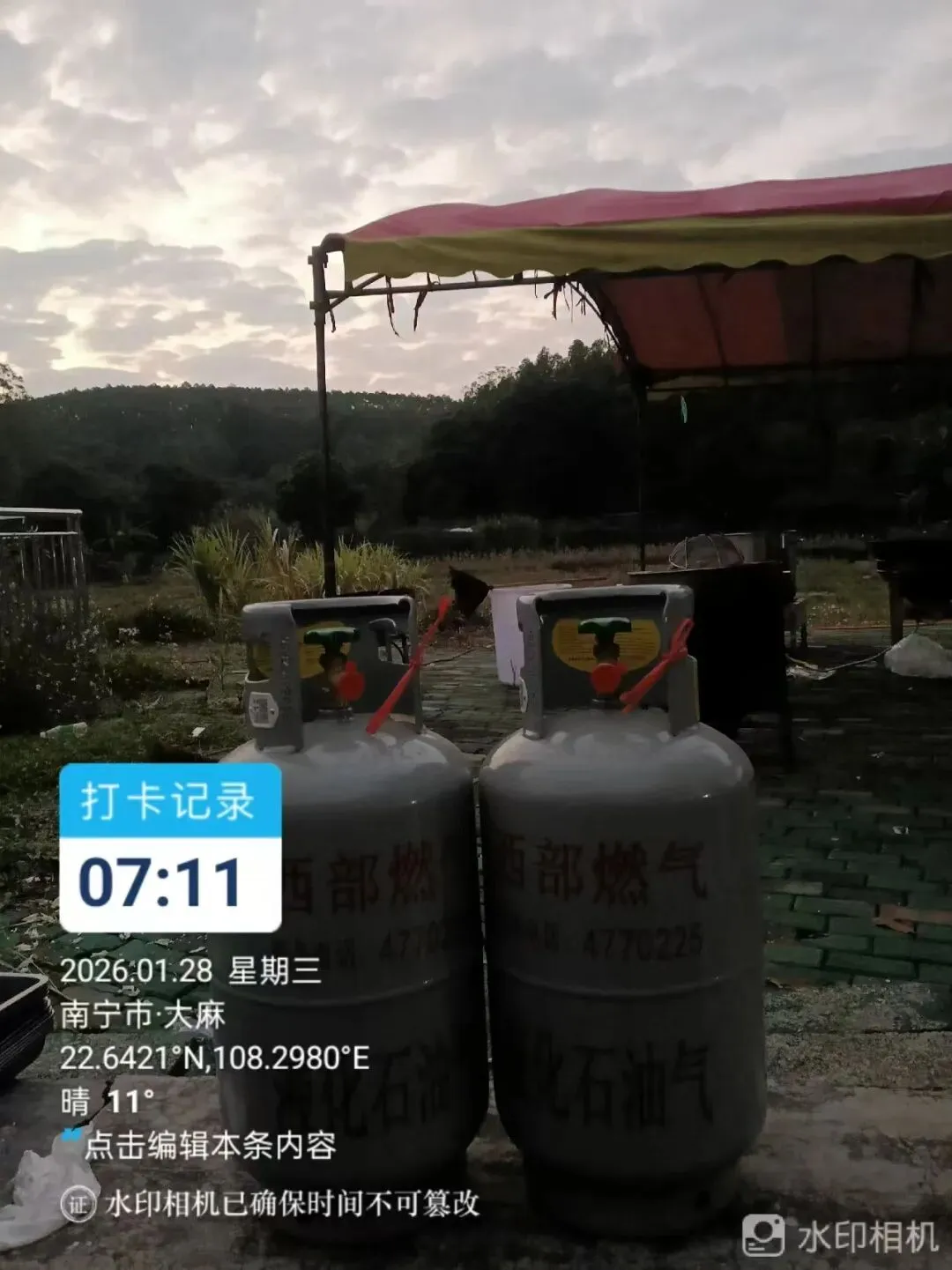 ▼2026年1月28日星期三(腊月初十),麻宽球(那咘村人)宗亲早上7:11拉两罐煤气回到祠堂,为家族无私奉献的精神非常值得我们学习。