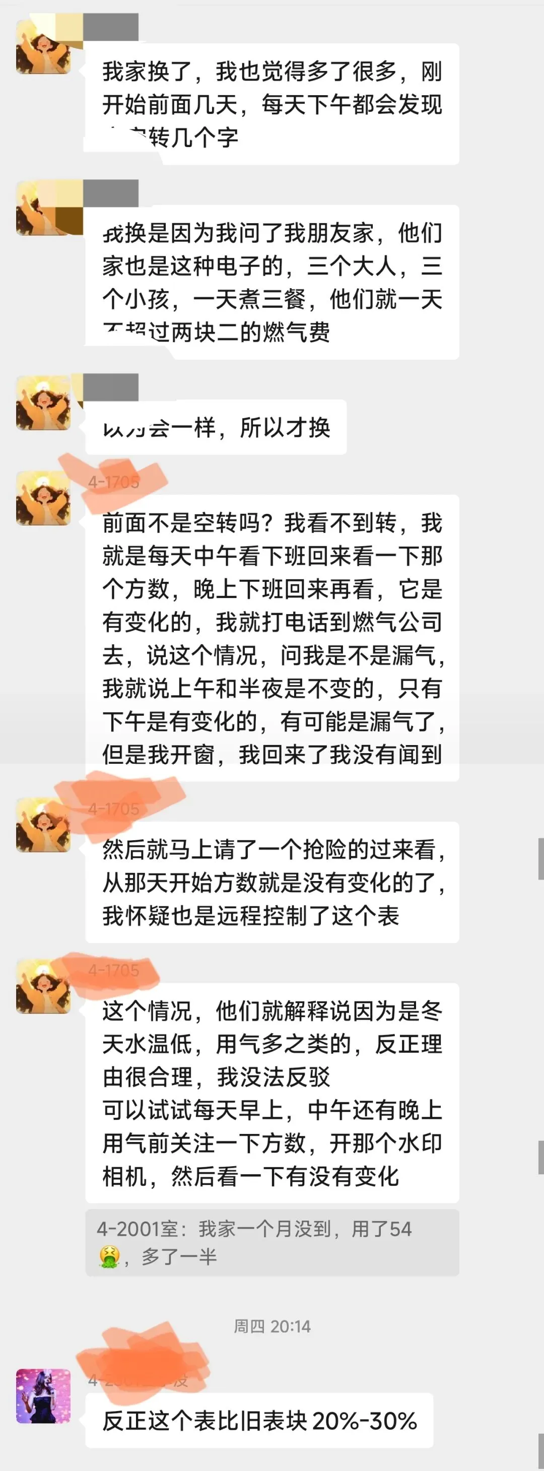 有人晒账单堪比“惊悚片”:去年全年燃气费才600块,如今一个月就干出去100块;有人算着账直跺脚:以前100立方燃气能扛5-6个月,现在2-3个月就见了底;更有耿直业主灵魂发问:“换表前我家燃气费是‘细水长流’,换表后直接‘洪水滔天’,这表怕不是装了火箭推进器?”