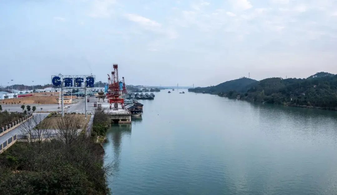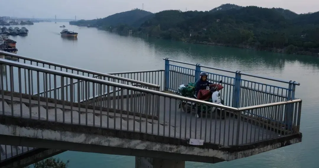 南宁港六景港区,六景大桥旁的供周边村民过江的天桥