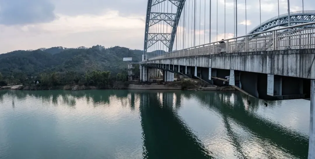 南宁港六景港区,六景大桥倒映在邕江水面的水影