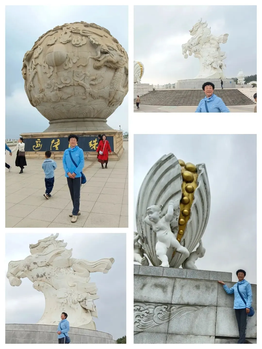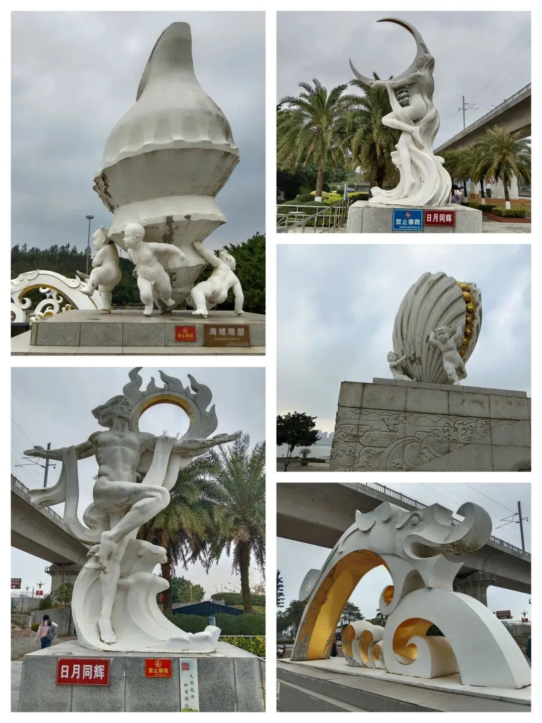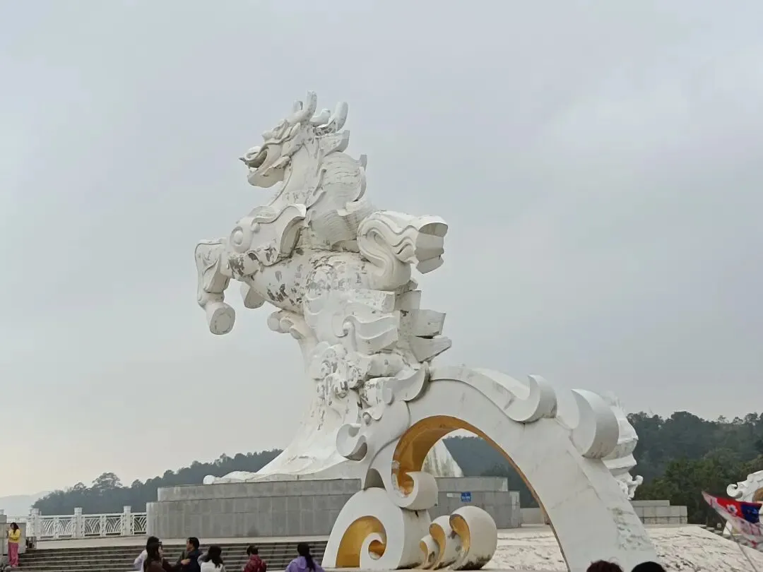 “海螺雕塑”、“日月同辉”等白色雕塑守在白龙神马周围,如珍珠贝、如蛟龙等,展现了海洋文化的多姿多彩。