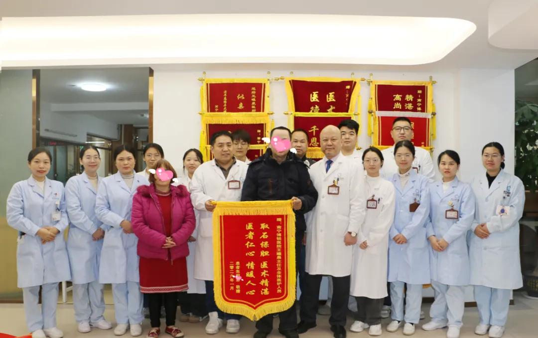 术后护理团队为其制定个性化康复方案,通过早期肠内营养支持、疼痛管理等多维度干预,帮助患者快速恢复胃肠功能。出院时,朱先生特意定制锦旗送到外科病房:“是你们用精湛医术和贴心照护让我重获新生!”