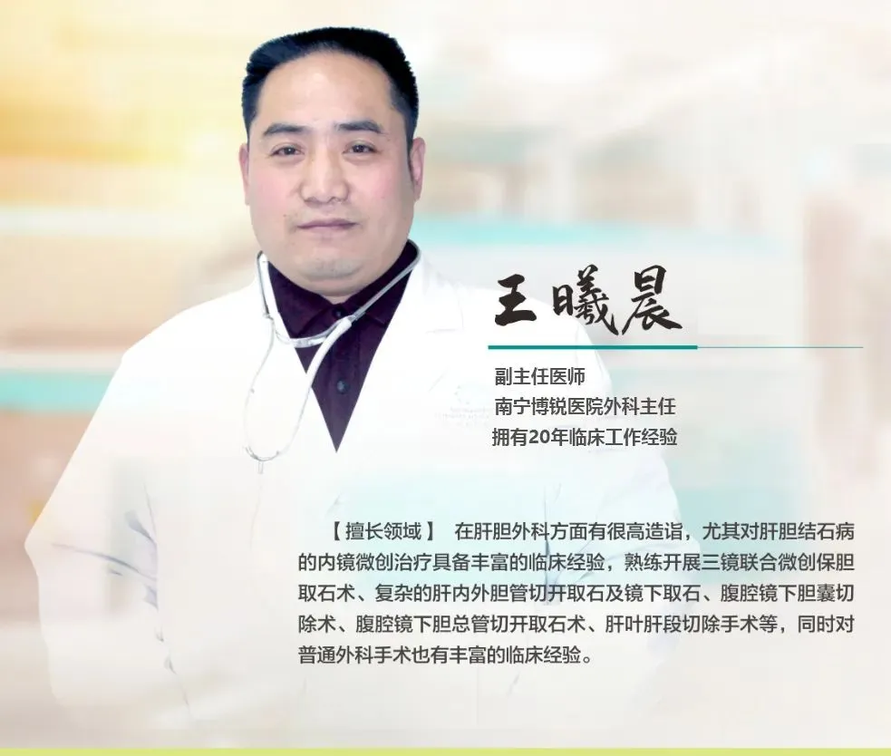 6个月前,朱先生因右上腹剧痛在当地医院确诊为胆总管结石,接受ERCP治疗后症状缓解。然而半个月前,疼痛卷土重来且愈发剧烈,复查显示胆总管胰腺段出现多发结石,并继发急性胰腺炎。面对反复发作的顽疾,朱先生在亲友推荐下慕名来到南宁博锐医院,寻求外科王曦晨主任的帮助。