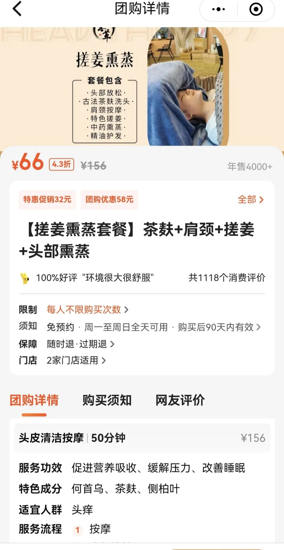 50分钟茶麸洗头,结帐2人才130巨便宜。