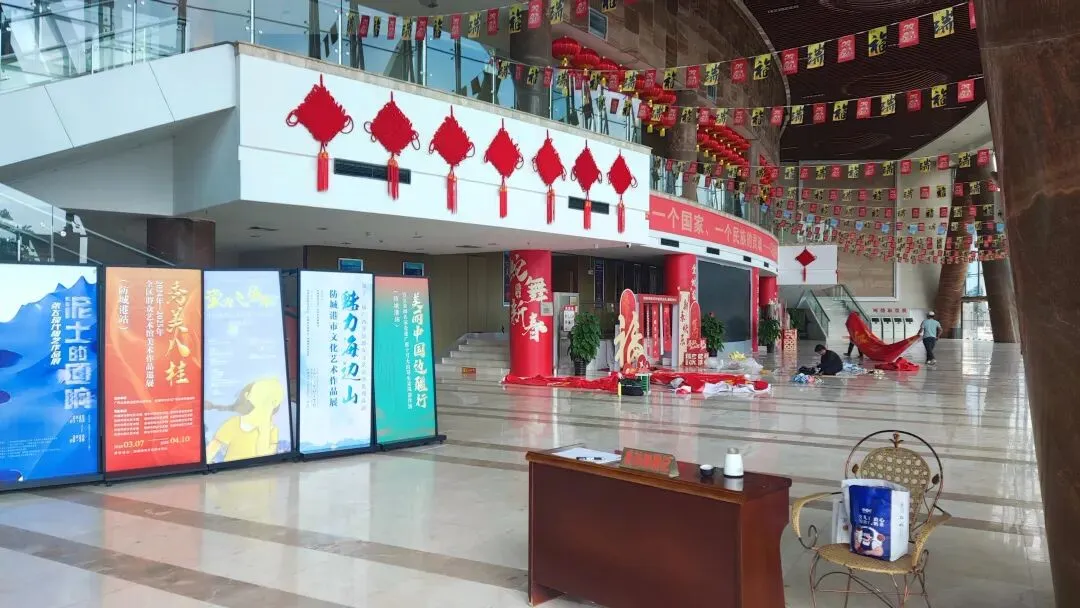 在展厅的另一侧,工作人员正在紧锣密鼓地筹备新春主题展。红色的中国结、喜庆的福字与巨型灯笼已初见雏形,即将为市民带来一场充满年味的视觉盛宴,让艺术中心成为春节期间最热闹的文化打卡点。