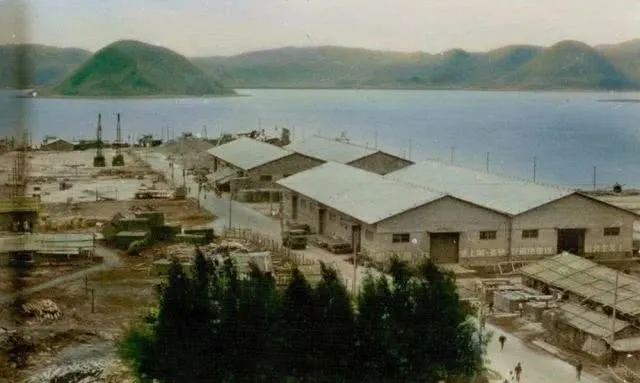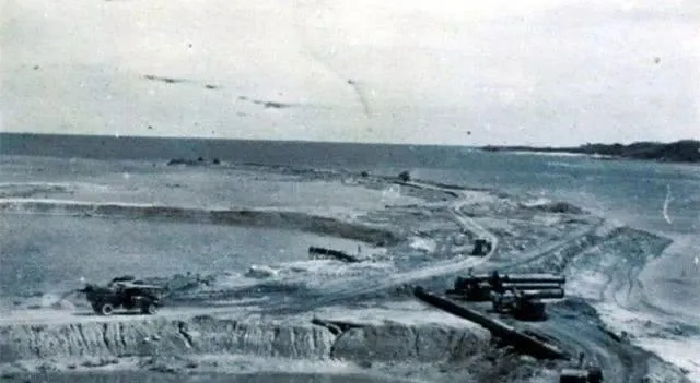 图中灰白的手绘沙盘叫港区总平面草图,老一辈管它叫“322工程”的底稿,山影海线勾得很淡,唯独码头位置按得很实在,爷爷说,那几年就靠这张图,扛着锹把一点点把海岸线往外推.