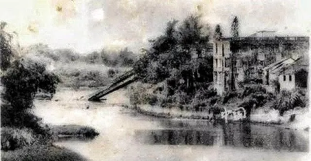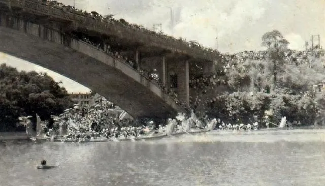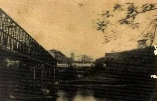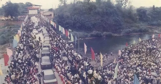 图中铁网状的是老铁桥,后来换成水泥桥,栏板上三个大字刻着“中越友谊”,河面一到端午就热闹,鼓点一响,龙舟从桥洞下呼啦冲过去,岸上喊声盖过了风声.