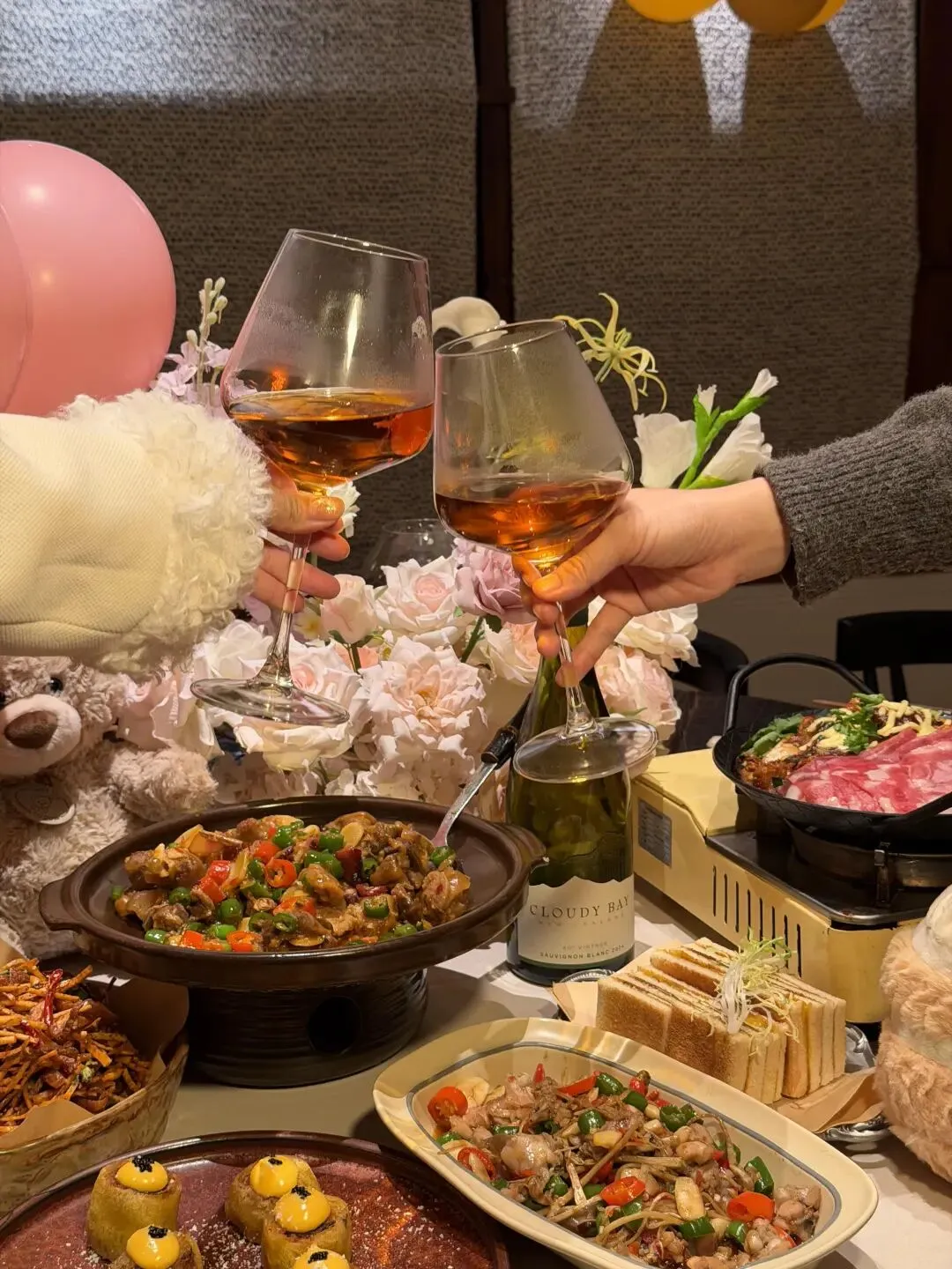 紧接着上桌的辣牛腩糯叽叽年糕锅,更是把新年氛围拉满。砂锅冒着滚滚热气,牛腩块堆得像小山,色泽红亮诱人,年糕浸在浓稠的汤汁里,吸饱了酱汁后变得晶莹剔透。用筷子夹起一块牛腩,炖得软烂脱骨,轻轻一抿就化在嘴里,卤香与辣香交织,鲜得让人跺脚;年糕则Q弹到能拉丝,裹着牛腩的汤汁入口,辣得过瘾又带着糯米的软糯,越嚼越香。朋友笑着说:“新年吃年糕,寓意年年高升!这锅不仅好吃,彩头还足,咱们今年肯定顺风顺水!”大家边吃边夹菜,你一块牛腩我一块年糕,热热闹闹的氛围,比任何山珍海味都让人暖心。
