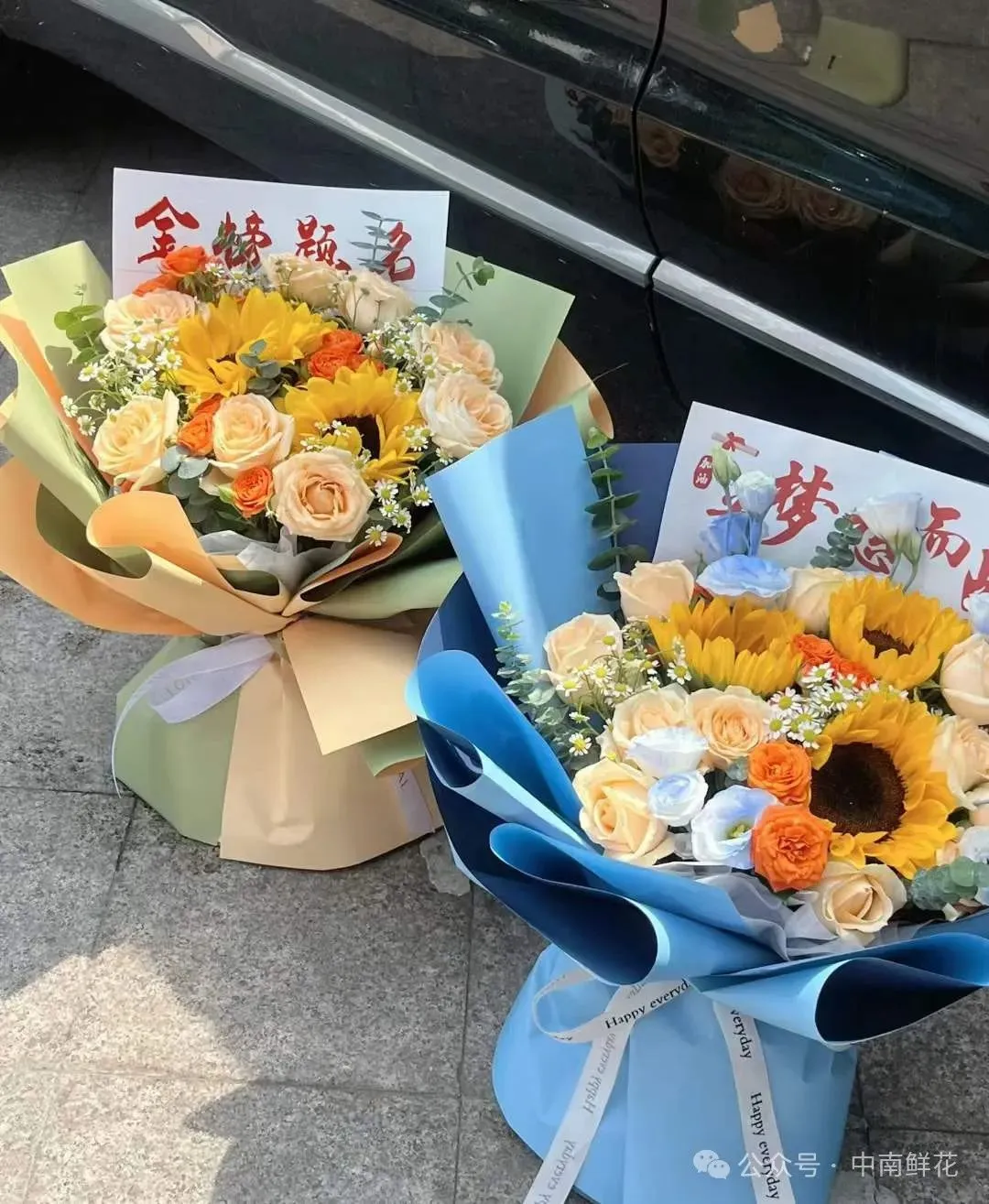 选择与花束颜色相协调或形成对比的包装纸,如粉色花朵搭配白色或淡紫色包装纸,能增添清新雅致感。