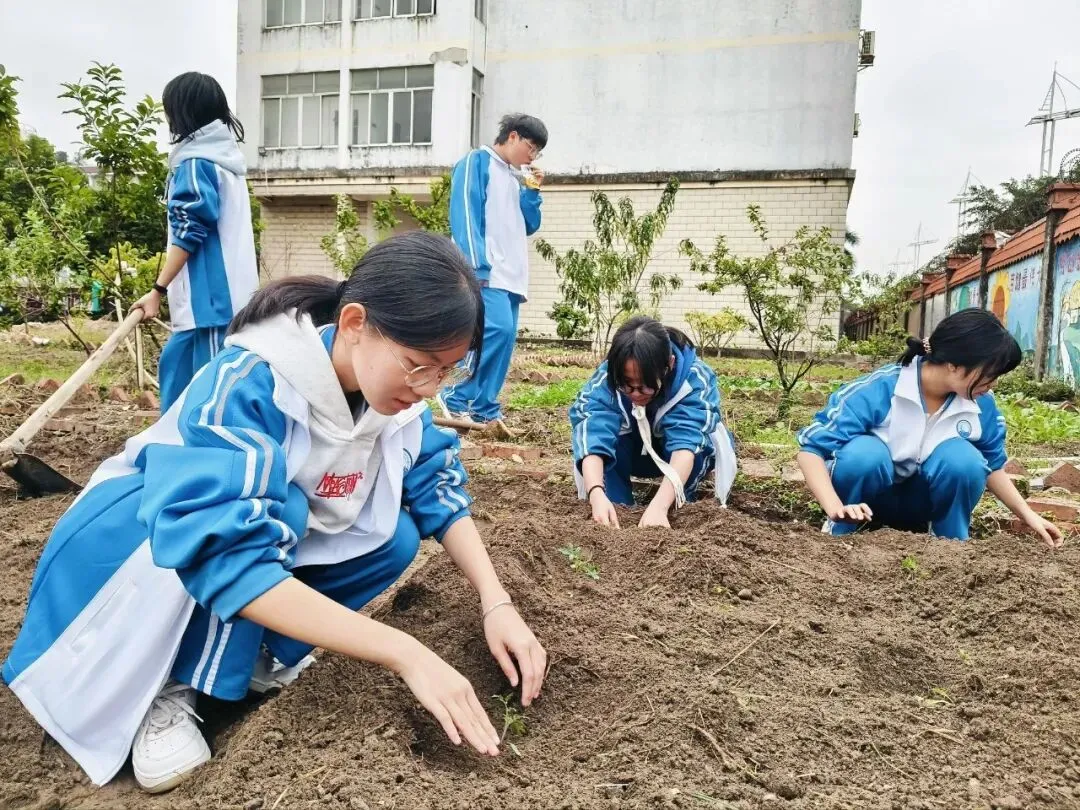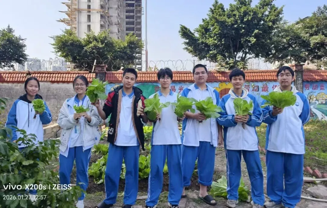 防城港市高级中学紧扣立德树人根本任务,拓宽五育并举育人渠道,为各班级精心规划专属蔬果种植“基地”,开展劳动育人种植实践活动。活动以“耕耘润心,劳动赋能”为核心,将课堂知识与田间实践紧密结合。