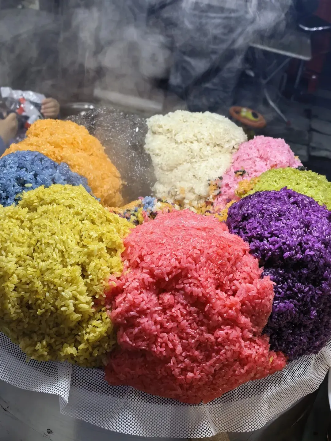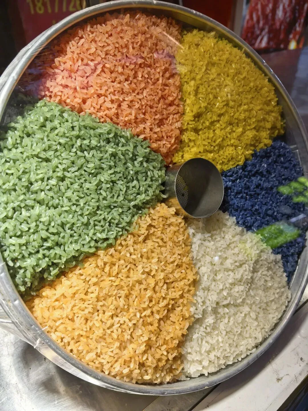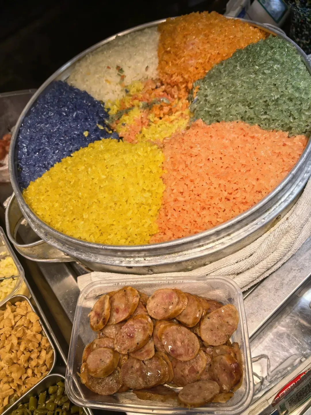 先吃了七彩糯米饭(上下两层是扎实的饭,中间有十几种小料,特别好吃又不油腻
