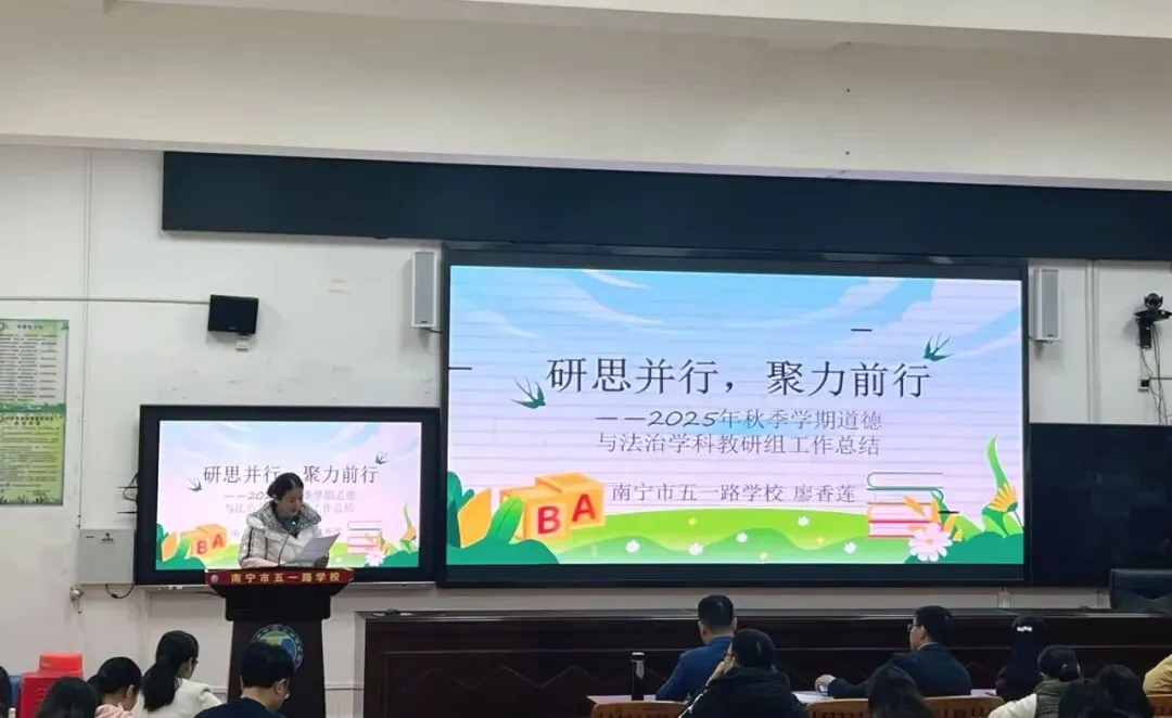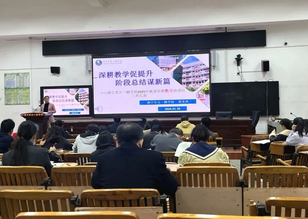 时光不语,育人有声;教研不辍,成长不止。当学期的钟声渐入尾声,当教学的硕果挂满枝头,南宁市五一路学校期末教研总结分享会如期而至。2026年1月30日上午,全体教师齐聚一堂,以复盘为基,以研讨为翼,在思想的碰撞中沉淀经验,为这一学期的教研工作画上圆满句号,也为新学期的教育教学注入强劲动力。