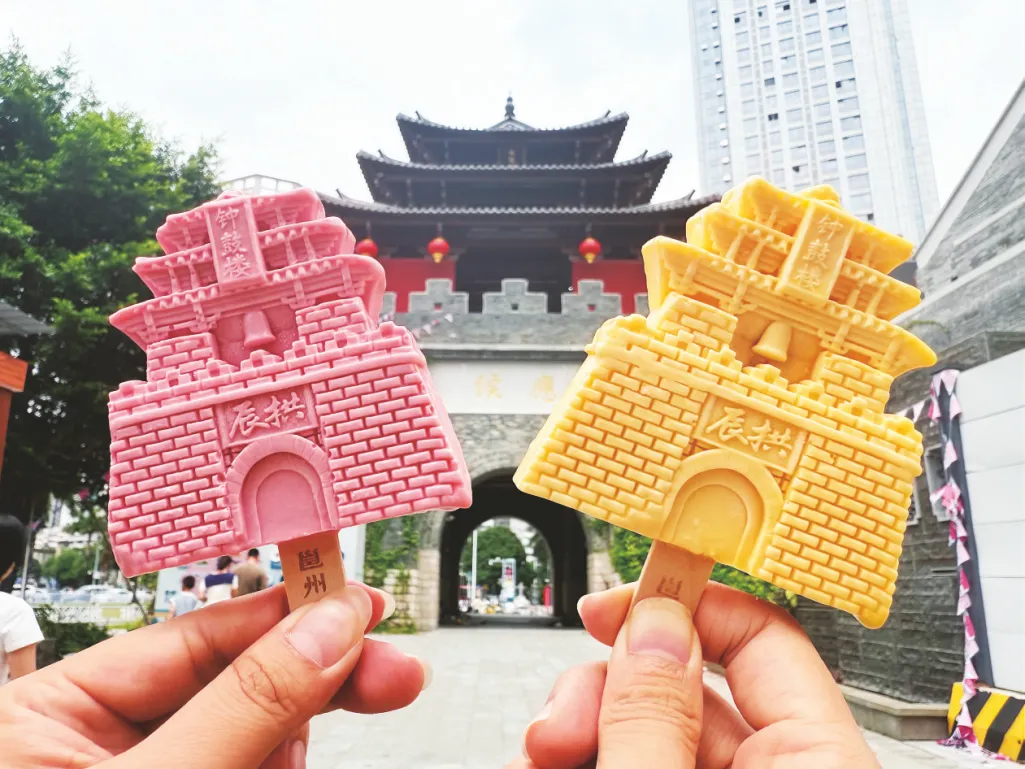 ▲中山路积极引入本地老字号、非遗作坊等,让历史街区可游、可憩、可消费。图为钟鼓楼文创雪糕。 (资料图)