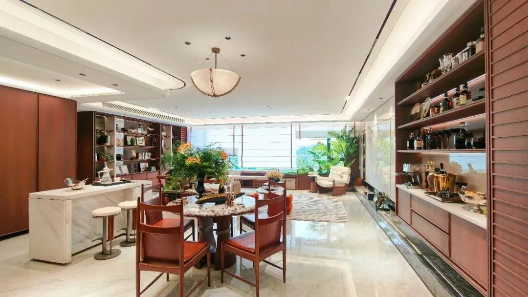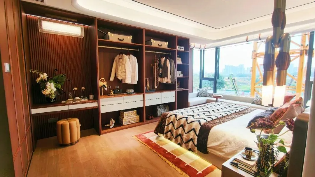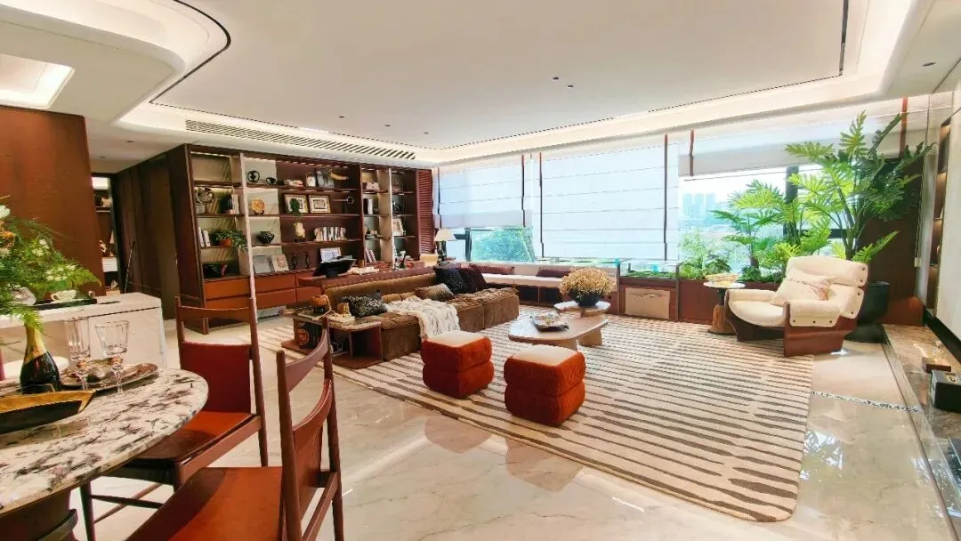 活动当天,现场开放了建面约126㎡4房户型的精装样板间,采用意式老钱风装修风格,搭配硕大的落地窗与多面开窗的采光面,明亮感十足。