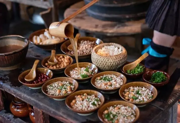 三江油茶也要喝一碗,茶汤里有花生、米花、蒜末,咸香顶饱,走路不打晃。