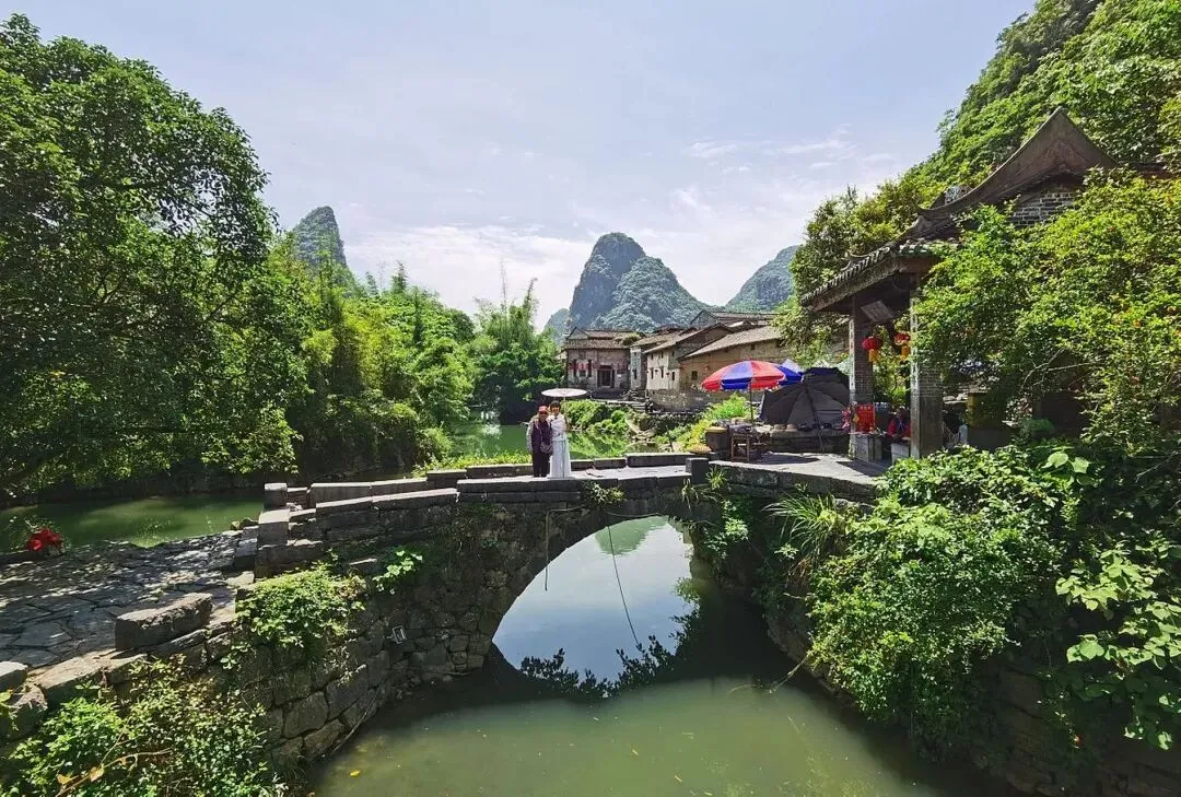 白天登马鞍山和鱼峰山,台阶不长,出片快,能看见江面像一条绿带。