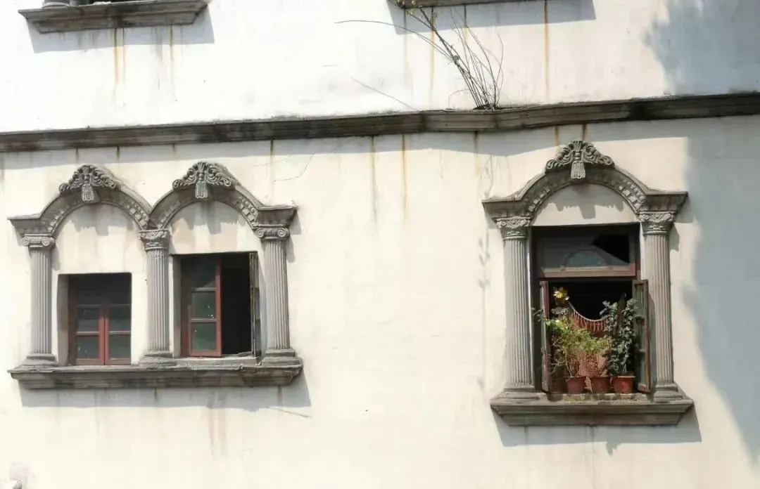 行走在古老的青砖巷里,趟栊门、镂花雕窗、灰雕窗顶随处可见,俨然一副上海弄堂的样子。