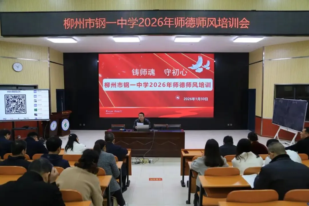 薪火添翼,共担使命。学校党委书记黄卷明宣布梁俊、蔡鹏举两位同志任命为我校副校长的决定。两位新任副校长为学校管理队伍注入新的活力与智慧,凝聚更强管理合力,他们表示将以此为新的起点,与全体班子成员心往一处想、劲往一处使,共同深耕校园建设、服务师生成长、助力柳州教育提质增效,以更饱满的担当精神、更务实的工作作风,为推动学校高质量发展而不懈努力。随后,黄卷明书记围绕党的二十届四中全会精神、《教育强国建设规划纲要(2024-2035)》、新时代高素质专业化教师队伍建设、2026年教育工作部署等核心内容开展培训,引导全体教师深化理论武装、明晰政策方向、提升政治素养与专业能力,强化立德树人使命担当,通过重温教师职业行为“十严禁”、典型案例,明确行为红线筑牢师德底线。此外,还着重进行春节前廉洁提醒,要求全体教职工严守中央八项规定及其实施细则精神,恪守廉洁从教底线,坚守清正教风,过一个文明、廉洁、祥和的春节。