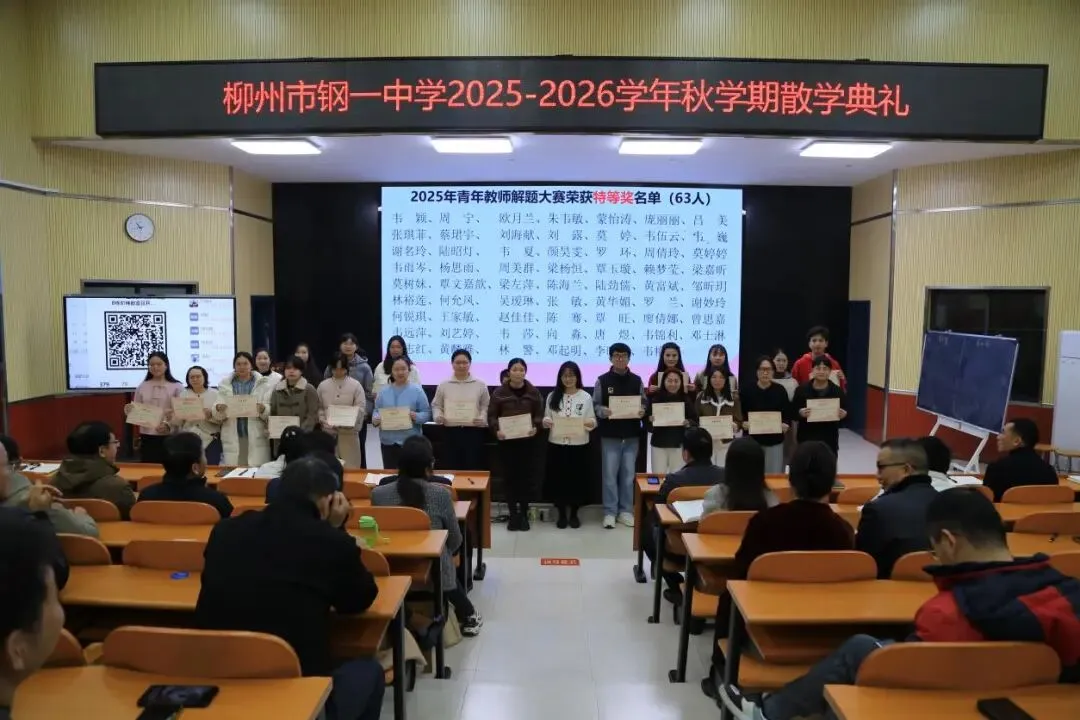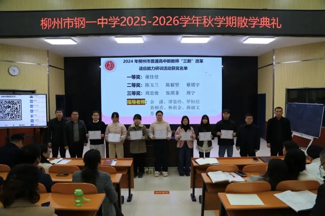 耕耘结硕果,桃李竞芬芳。为不断激发教师成长动能,发挥榜样引领作用,共同见证成长荣光。会上,蒋桂华副校长宣读柳州市普通高中新教师“三新”改革适应能力研训、学校青年教师解题大赛等赛事获奖名单,学校领导班子为获奖教师逐一颁奖。一张张证书、一次次掌声,既是对获奖教师专业能力、教研成果的充分肯定,也是学校坚持教师培养、厚植师资力量的生动体现。