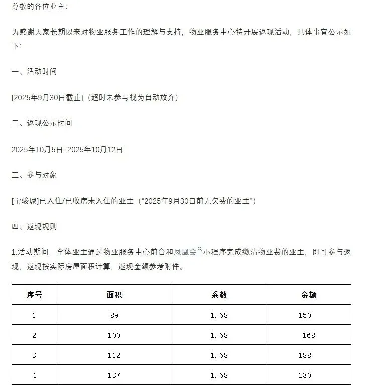 为每户业主发放分红
