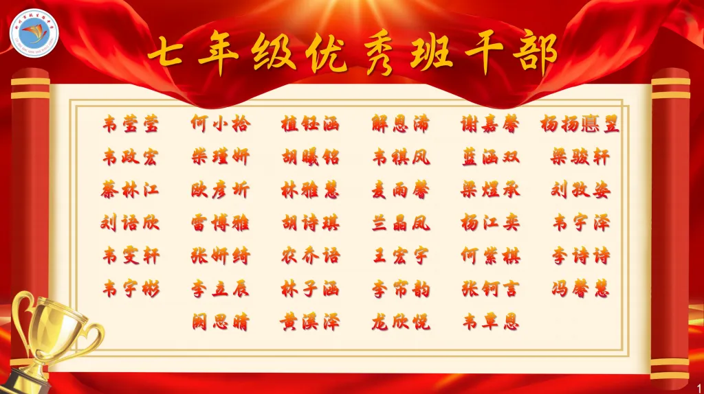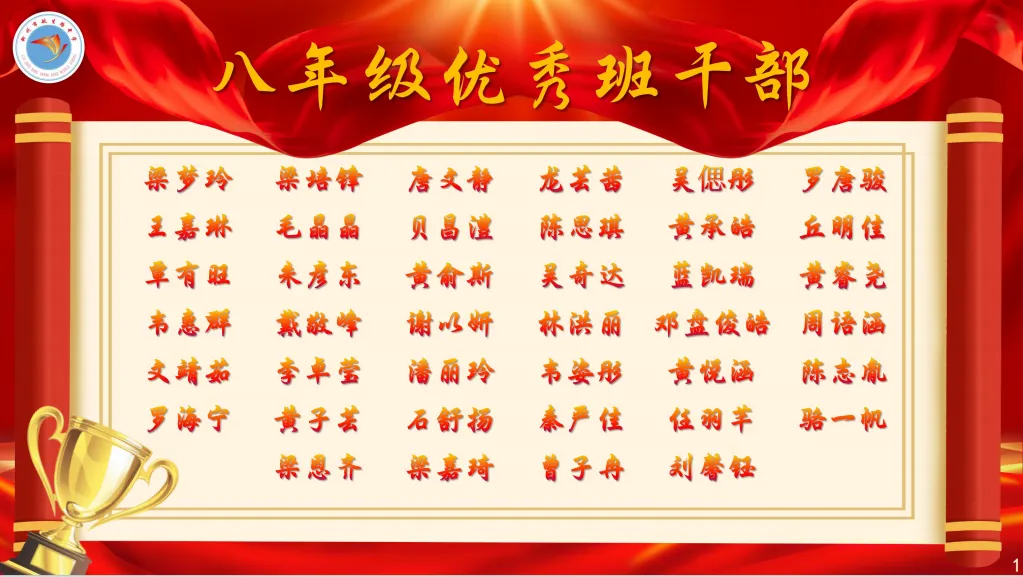 “优秀班干部”获奖同学:你们以身作则,用责任心凝聚班级力量,用行动力带动集体进步,让班级成为温暖有爱的大家庭;