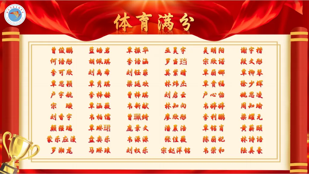 “体育满分”获奖同学:你们是运动场上的追风少年,是汗水与毅力的践行者。你们在体育测试中斩获满分,让青春在奔跑与跳跃中绽放蓬勃生机。