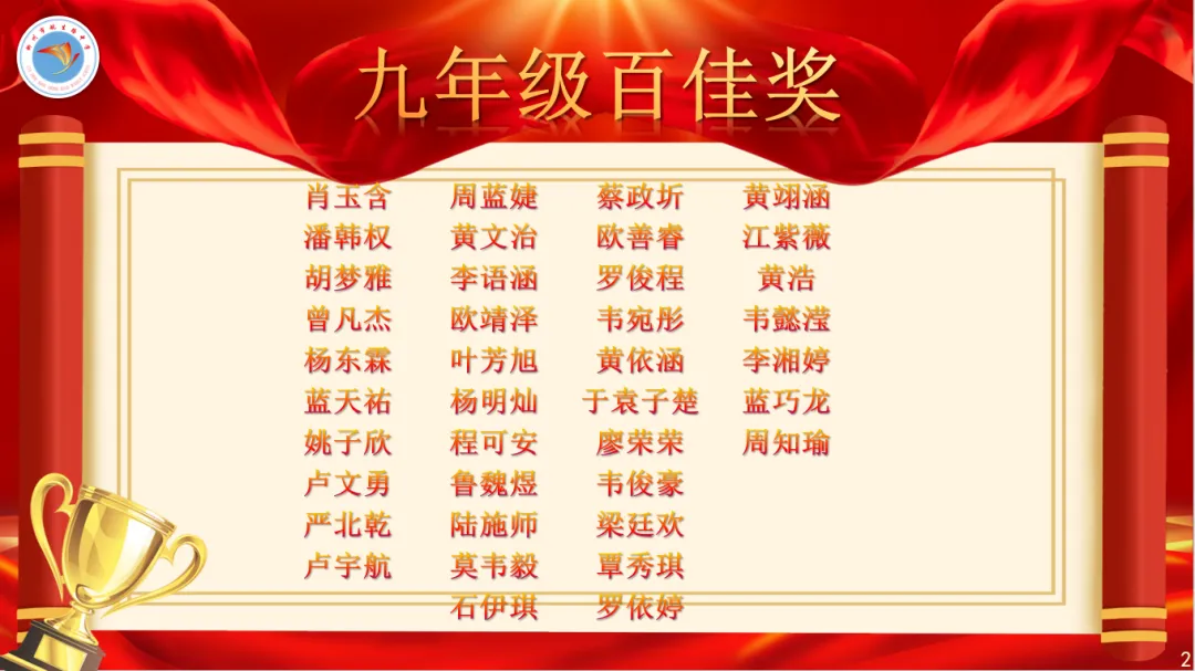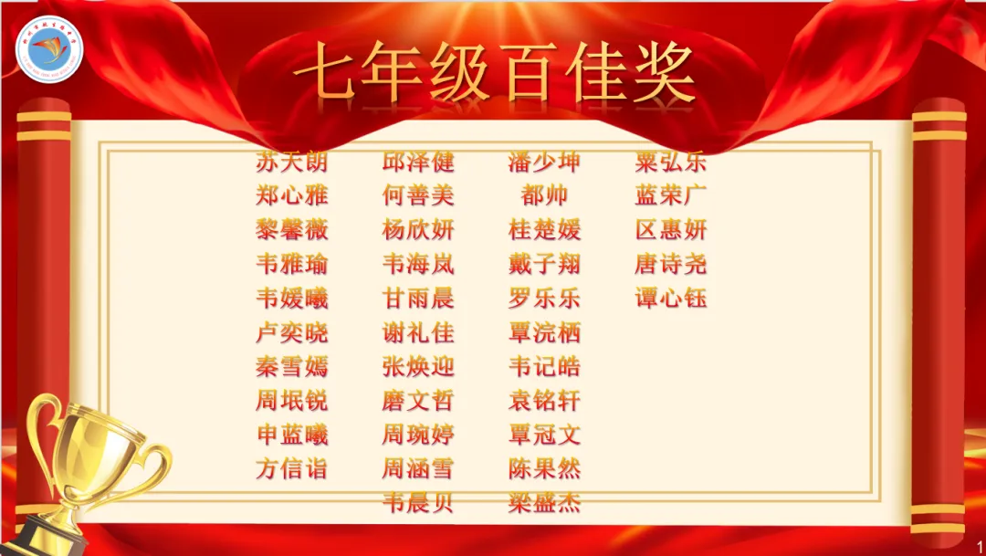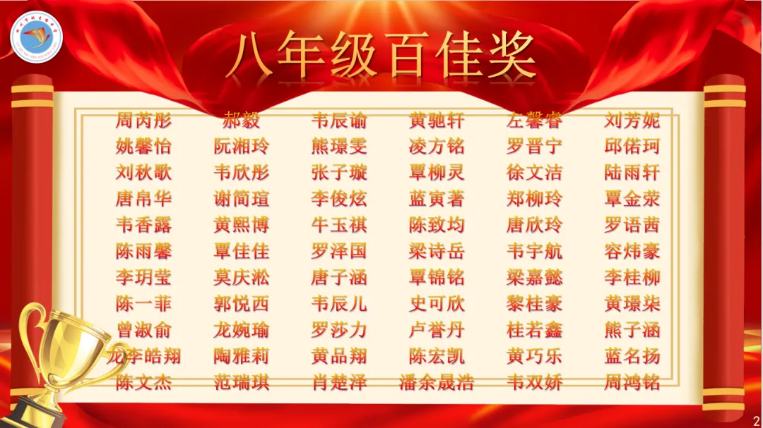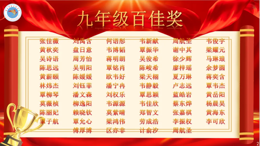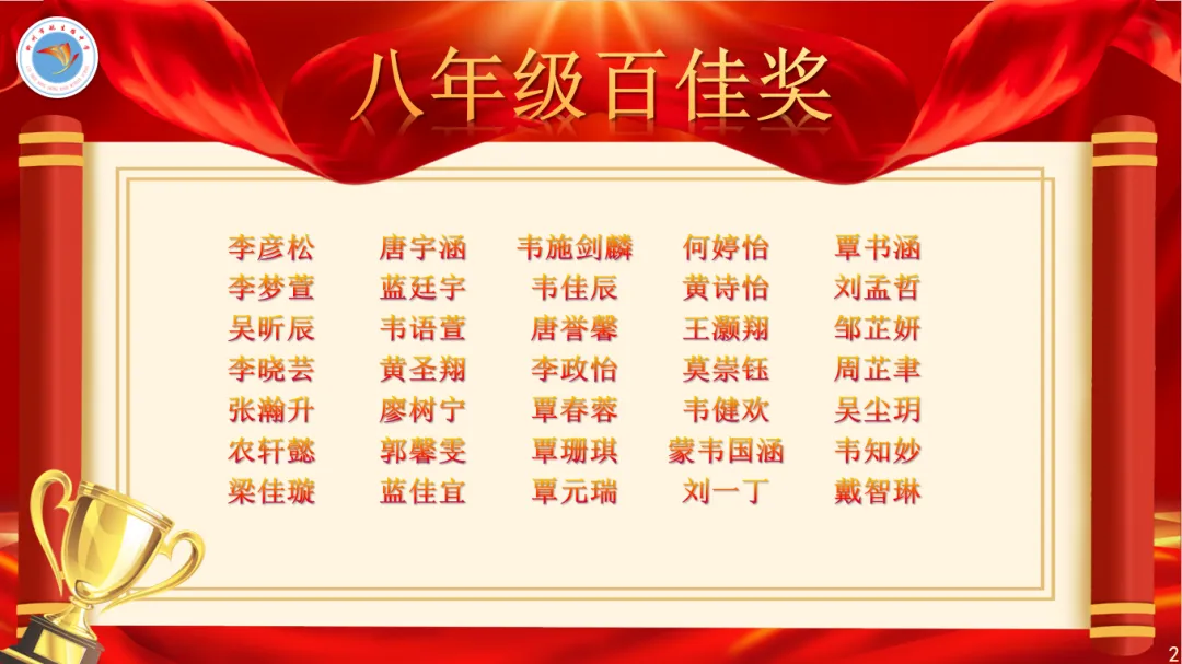 “年级百佳奖”获奖同学:你们是校园里的百颗星辰,绽放独特光芒,以各自的努力诠释着优秀的多元可能,是值得每一位同学学习的榜样力量!