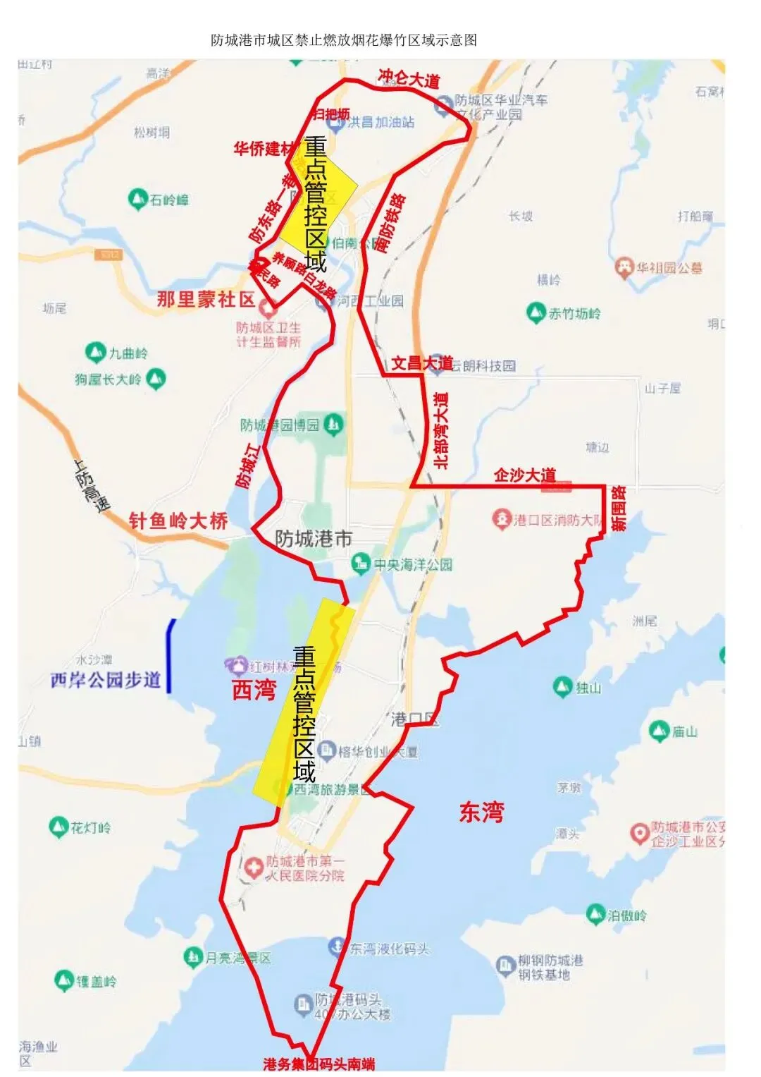 港口区红线范围内禁止燃放烟花爆竹(详见附图)