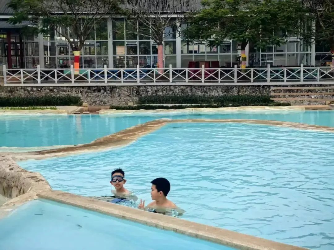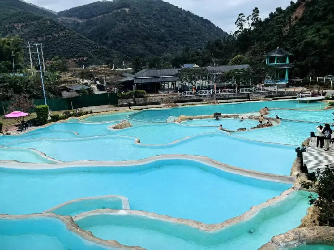 睡到自然醒,前往布透温泉。这里是藏在十万大山脚下的“蓝色仙境”,梯田状温泉池如土耳其棉花堡,泉水湛蓝如琉璃。浸润在富含矿物质的温泉中,远眺群山青翠,每一次呼吸都是身心的治愈。